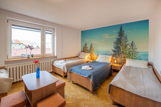 Dysponujemy pokojami 2-, 3-, 4- oraz 5-osobowymi.